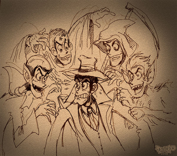 Woo! Finally, I did it. I drew the entire cast of Lupin III as gargoyles. XD