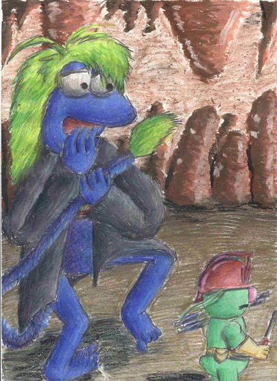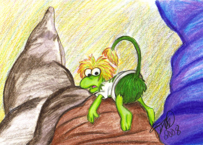 "Somehow, Red, I don't think we were supposed to start at the bottom of the construction. Especially not while the doozers are still building it."I figured if Gold Demona was a fraggle, she would most likely hang out with the two fraggles I stole for my gargoyles fanfiction. Red and Boober. Yes, I know Boober's actually a lot shorter than that, and probably not such a bright shade of green, but that's what came out.