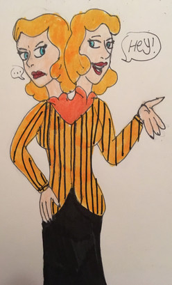 A drawing of Ms Marie Knowell in some classical clothing, like from the Simpsons episode where the Burlesque house exists and run by Belle.
