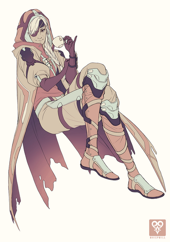 Love how there's no shading on the colouring, but you still manage to have this work full of detail! The decorations and especially gunshoes are wonderfully done <3