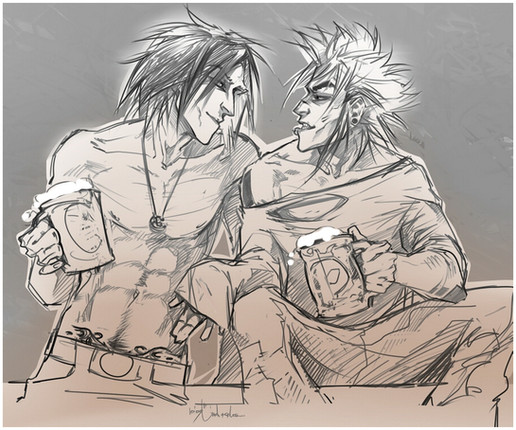 i know for sure that the right one is older Philip, the other one i think is Koryn the pirate captain? how they know each other? i am not sure :'D