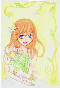 Aww, she's so pretty~~~ I love the softness of this picture, and all the flowers look so nice. ^^