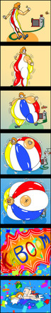 You get the idea. Poor Patricia has been duked by one of the escaped convicts. Turned into a giant water balloon.