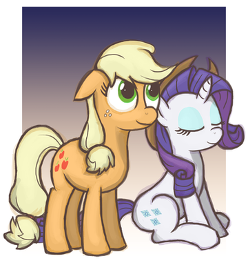 ....I cannot lie, I seriously do adore Rarijack. It's my terrible guilty pleasure, even guiltier than my cornball daytime soap opera I never, ever miss. What started as a simple fascination courtesy of an unassuming fanfiction I happened to read when I first joined the pony community, ended up snowballing to the point that I have now become a ridiculous sappy-shippy fangirl. I had never "shipped" anything in my 30 years before ponies either, so the irony that a largely male fanbase of a little girl's cartoon has resulted in my developing such a pathetic addiction has not been lost on me, believe me.But in any case, yes, do have some adorable ponies, and even if we shall only imagine them enjoying a nice day together in an entirely platonic fashion (it's possible if you squint enough). Just lookit them, they're so darling~!