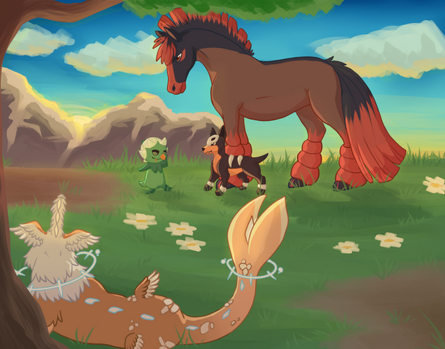 [Galarian Ponyta, Totadile, GMax Centiskorch] +5 Levels [Fullbody Shaded - 2 / Detailed Background - 3 ]
