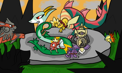 Pyre has such confidence in herself, despite being a part of the crystal generation of new mechanics... I'm sorry Pyre, but I love the fire skitterbug, so, yer just gonna have to dig that it's cooler than your crystal hat mechanics and whycan'tpokemonbringbackmegaevolutions? Seriously though, mega evolutions were the coolest mechanic =/