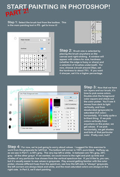 This is a method tutorial that explains the areas of the color picker, WHICH areas to use WHEN and which areas to avoid unless its a special case, this tutorial also suggests those times to use them.I've used this many times at comic convention panels and seminars, and its a very effective way to study not just color theory, but to teach yourself color choice as well.