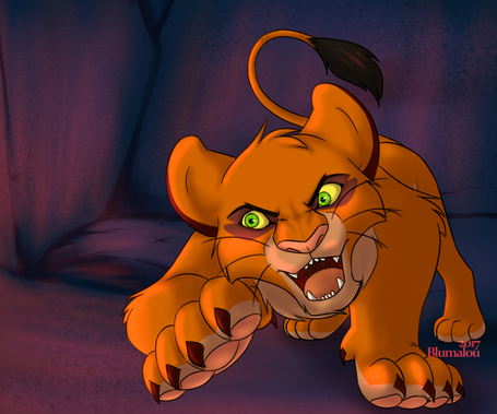 Jaja, fuera de broma, me encantó la postura, aproximándose con decisión , y con esa garritas expuestas. Adore el matiz que le diste a este dibujo, hablo del cuerpo con su entorno, ese tono verde me encanta sobre el cuerpo de Ahadi, me recuerda mucho al dibujo que le hiciste a Daina por el mismo motivo, sólo que éste tiene un lineart marcado