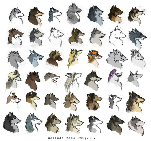 I did this exercise to get back on my feet.I started doing it for the patterns on their skin only, but then i imagined the colors and soon i was also concerned about the shapes. I started looking for interesting patterns/shapes on existing animals. 2nd row 3rd head is heavily inspired by antelopes, 2nd row 4th started out as crocodile-ish, and midway i looked up butterflies. 3rd row 1st head is fully based on butterflies. 3rd row 4th head is based on horses, and 2 kinds of goats (mountain goat and markhor). 4th row 1 and 2 and the last head are based on crustaceans, especially on one that i didn't even find a Wikipedia article about (Acanthonotozoma). This is just a fraction of animals i referenced.