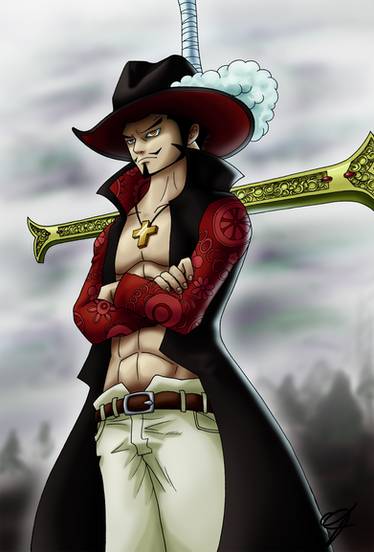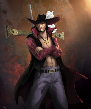 "Hawk-eyes" Mihawkthe first Shichibukai tha appear in one piece , and one of my fav characters, is the best swordman in world, with a move of his sword he can destroy a float, the last Roronoa Zoro rival.