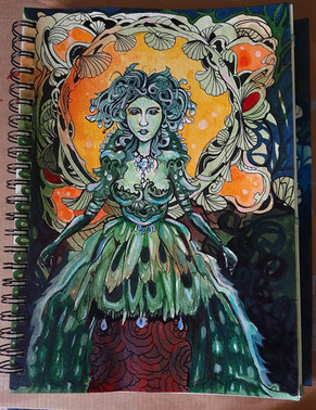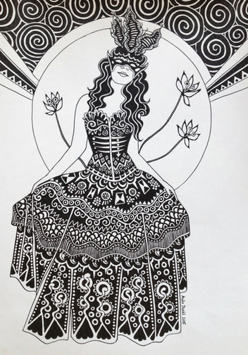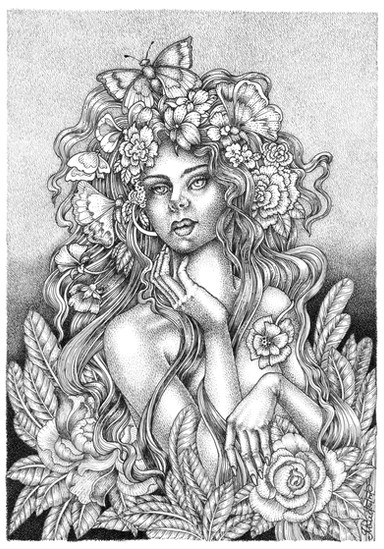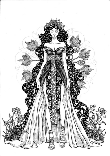 #acrylic #design #detailed #dress #fantasyart #floral #flowers #ink #leaves #monochrome #nature #pens #portrait #pose #woman #decorativeart #blackandwhite #illustration #linework #penandinkdrawing #traditionalart