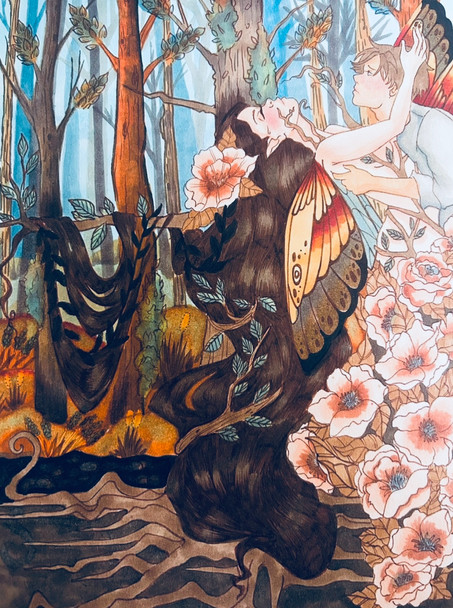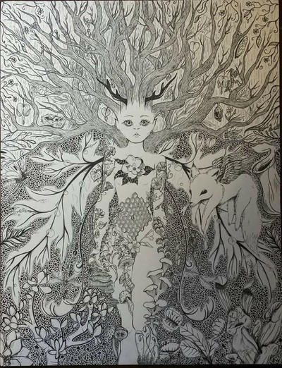 #acrylic #colorful #decorative #fantasy #flowers #lady #mess #motifs #watercolor #woman #acrylicart #beautifulgirl #coloredpencil #coloredpencils #redhead #traditionalart