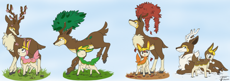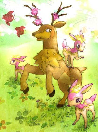 I find Pokemon a great way to get out of a nasty art block. Was the same with my old account where I drew Pokemon Gijinkas. I should go back to that some time. Anyways, I like Deerling, though its cry drives my parrot insane if he happens to hear it. I got a little bored with the background and then it just kinda exploded.... I tend to ramble.Art by me