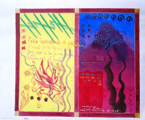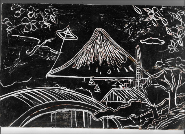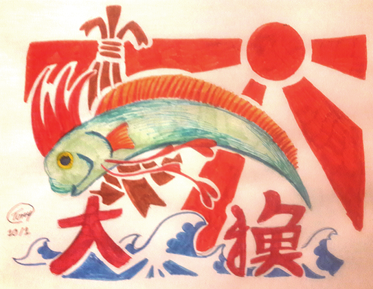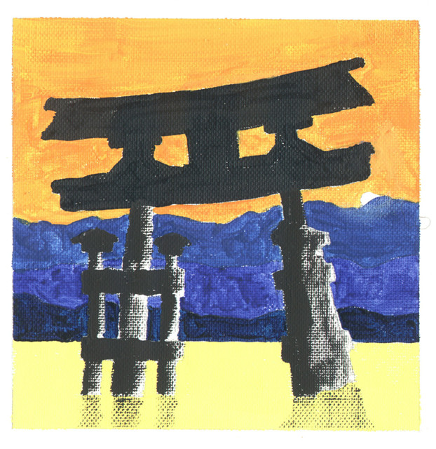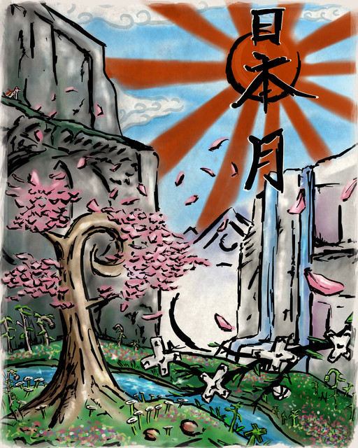 The surrounding kanji and the sakura tree pattern were painted using acrylic paint, everything else was Crayola colored pencil.