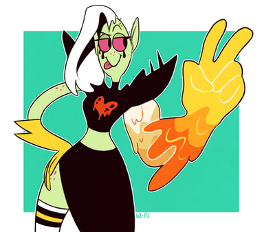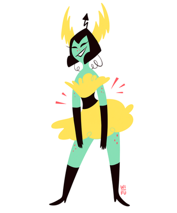 at one point you drew her in a yellow outfit and i was like holy shiit because yellow really fits her, so heres a suggestion