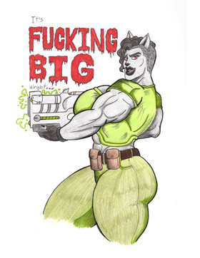 Translation: "Yes, this titanic weapon should turn people's attention away from my comically small genitals!"