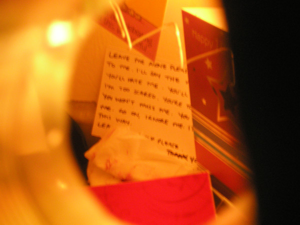 I like the colors on it. I can't wait to look at the other pictures! I also like how it's beggin' me to read it. It sounds silly, but I always write "read me" on all of my journals. I keep thinkin' maybe, in the future, someone will pick up one of my journals just to see what a kid living in the past thought and did. xP