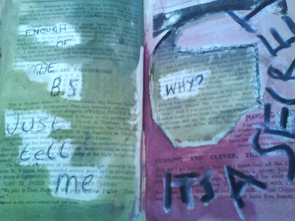 I found this gorgeous old book at a street book stall. It had these amazing drawings in them. A Ripley's Believe It Or Not book.So I coloured it in, like the child I am. I doodled, let my mind wander, ranted to it, loved it...