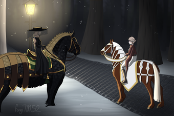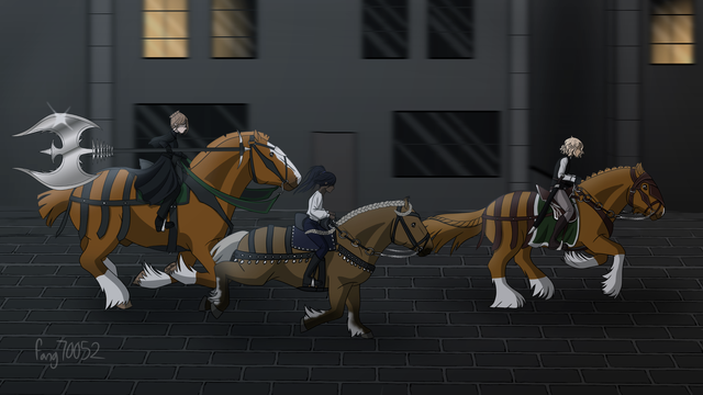 “I suppose we ought to go in and see what’s up.” He answered, taking Rose’s reins and leading him along down the path that led up to the manor. After hitching their horses to the hitching posts, the demon walked up the steps before using the gargoyle-carved knocker quite loudly.