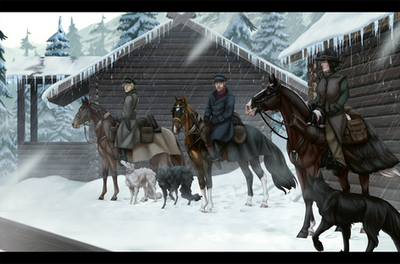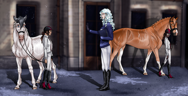 The stone-paved path lead straight across the large, mostly-open property to the lavish manor at its heart, splitting into a circle just in front of it; Rath assumed there was some kind of garden there when it wasn’t covered with snow. Several hitching posts could be found just in front of the building, the snow along both sides of the manor disturbed by a mess of tracks.