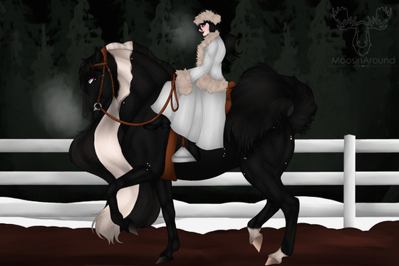 It had been snowing for days now, without signs of stopping. Ever since they got Cinder's tack all nice and clean, Soren's been really itching to get in the saddle. Although the weather wasn't ideal, she simply couldn't wait any longer and took Cinder out for a ride anyway.