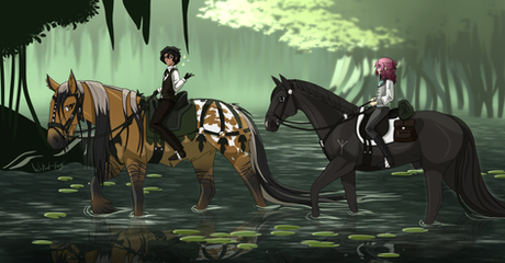 The mare was, to say the least, unhappy with the moment of pure blackness, but she made it through, without changing directions or stopping. Curtis sighed a huge sigh of relief when they ended up on the far side. He was not used to this stuff. It was new to him, the way that the demonic worlds worked, but he was willing to give it a shot. He remembered the conversation he’d had with Hitori that morning, where the other had cautioned him not to be too trusting, but to have fun if he could. Curtis smiled, as he saw the Estate come into view.