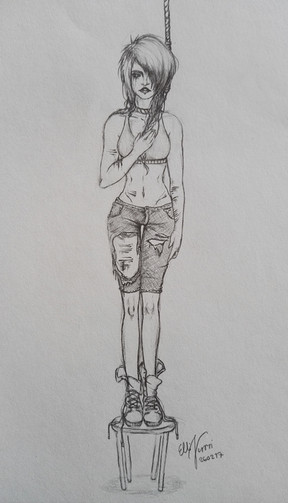 In this picture, food (or lack thereof) is the killer. there's a bunch of different things in the drawing to read into, but they're fairly obvious so i wont go into the detail. mwwaahaha more work for you.*disclaimer*:I have never gone through anorexia myself, but have an understanding of what the obsession is like. I apologize if you've found my drawing offensive.