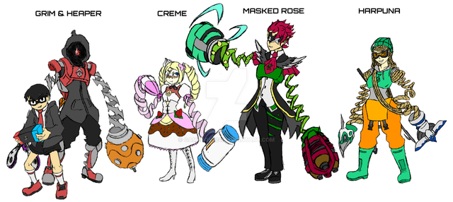 Love these guys! They all seem very atypical of their respective genres; like Globo's from a 30's cartoon, AVI's from a girl anime, Jersey Devil's from an action movie, you get the idea.