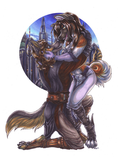 It's been a good long while since I did something for my husband and me, so I decided to take a break from commissions and do so. This is Janus's new design here...hehehe, the white with grey accents just wasn't working for him anymore, plus I think that Ashes pulls off that look the best.Done with prismacolor pencils and various inks.