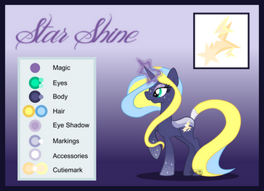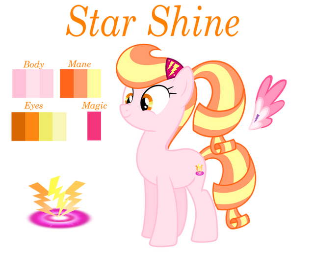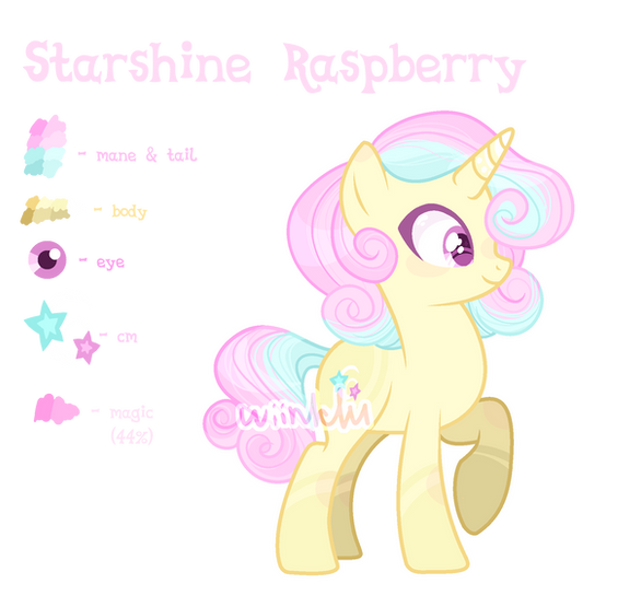 Story: Starshine Raspberry is a cheerful, kind and smart unicorn. Of course, she's not just a 'party pony'. Starshine is a great leader with good discipline. Star got her cutiemark in the school age, when was showing her magic talent to her friends.
