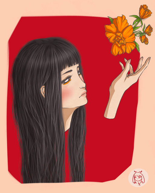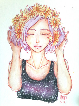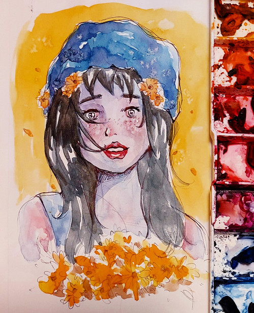 This idea generated as I was drawing : > At first it was only the "flower girl" in the picture. As I was trying out watercolor brushes this idea struck me.