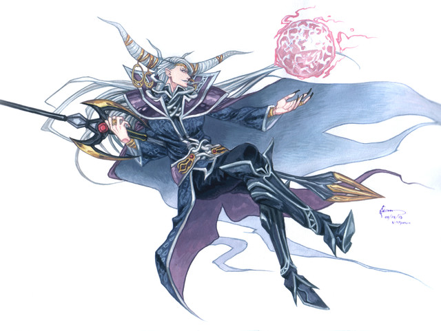 Absolutely gorgeous work of him that you have here. I agree that there is a little bit of the dracula concept in the outfit, but that's only because of my playing Lords of Shadow 2. xD I like this better than the Dissidia version of his outfit. ^^' And I am partially curious of the inspiration to add a metal wing on the other side. Is it perchance because of him only having one wing, or is there more of a reason?