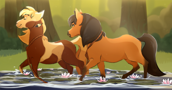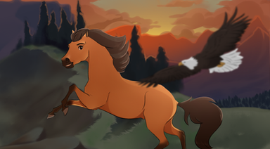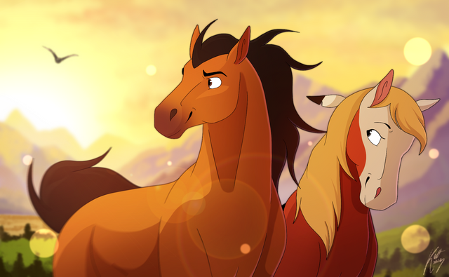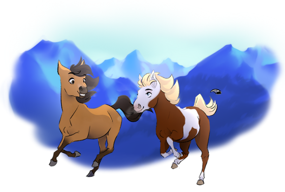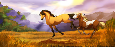 #fanart #background #dreamworks #runfree #shading #spiritstallionofthecimarron #wildhorses #americanpainthorse #buckskinhorse #horseequine #mustanghorse #couplepairing #rainfromspirit #couplehorse