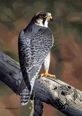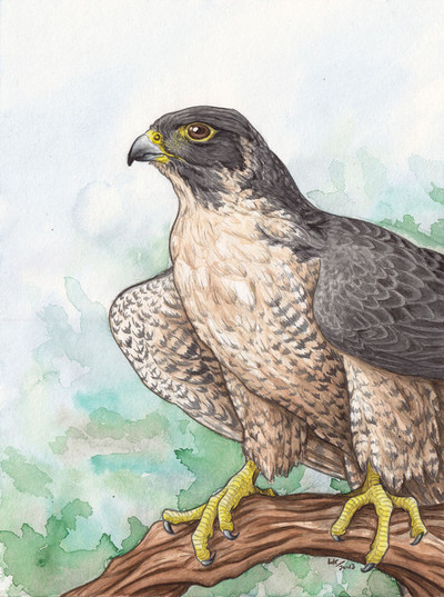 I had reference photos to work from on this one, a friend who rescues birds of prey had rehabilitated this amazing bird. I even got to have him on my wrist, what a buzz to have the fastest thing on earth resting on you!
