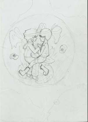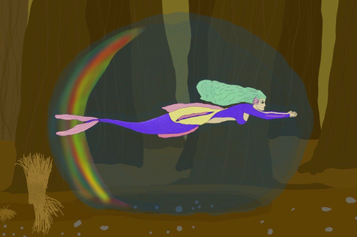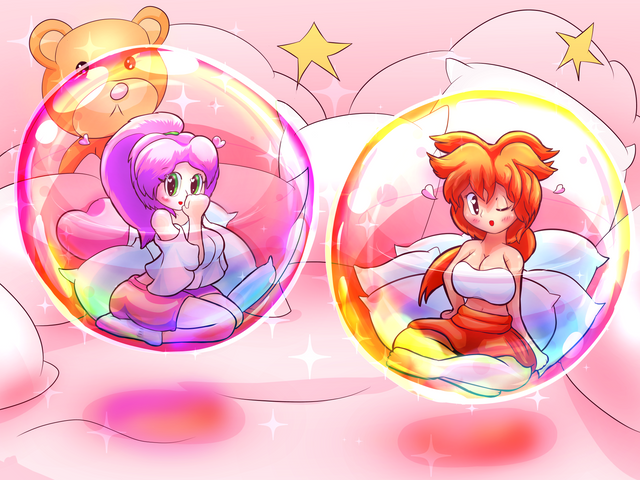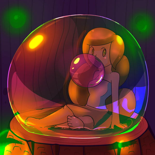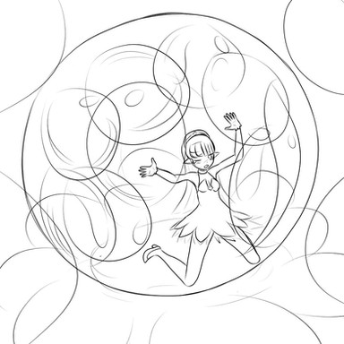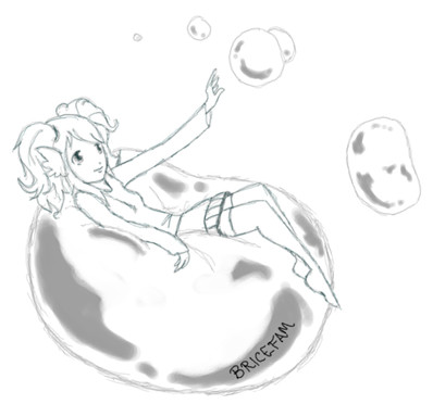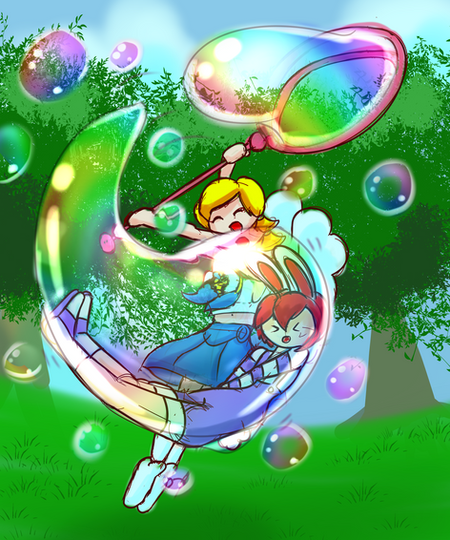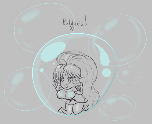 Daisy catching Mandew in a bubble. She is very amused, and he is very surprised.drawn january 2022