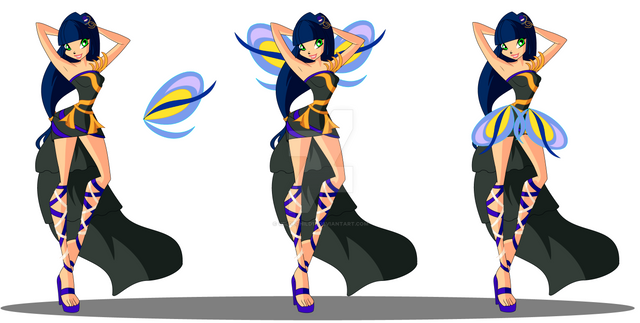 Considering my internet won't be reconnected until this weekend... I can't do any digital art or upload my newest episodes, so I'm uploading from my phone. But yes! This is my fan tranformation... Mesmerix! More info will come when I upload the digital form of this lovely creation.Base credit to AmerylizResources