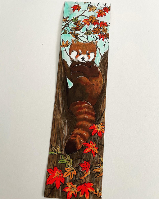 This is a page of different red pandas. I drew a basic outline for each in pencil and then inked them in. After that I used some watercolor paint and some watercolor markers and finished up with colored pencils. As you can see I did go out of the lines some but Iām overall happy with it.Related content