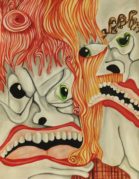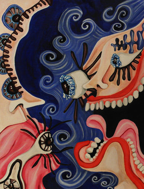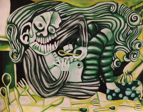 This is really different from the kind of art that i usually enjoy but you made it very special and it speaks to me. The eyelashes on your characters are madness. Your paintings are hell on earth. The technique is very different but the overall impression make me think of gerardo gomez also on deviantart. I tend to avoid the easy comparison of an "acid trip" for any psychedelic painting but it does evoke some drug overdose in a mcdonald playground to me.