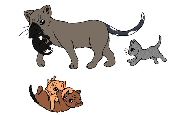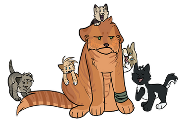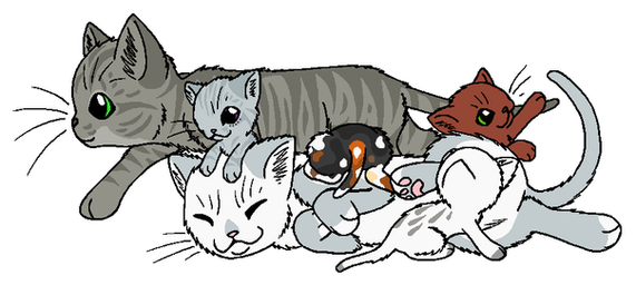 Wildpath loves to take some time out of the day to visit the nursery and play with the kits. This gives the harried queens some much-needed time away from the den! His large size and long fur also makes for some great snuggle material. ;DThe first three people to comment with a link to a reference sheet of a realistically-designed character will get to have that character included in this picture as one of the kittens that's playing with Wildpath!