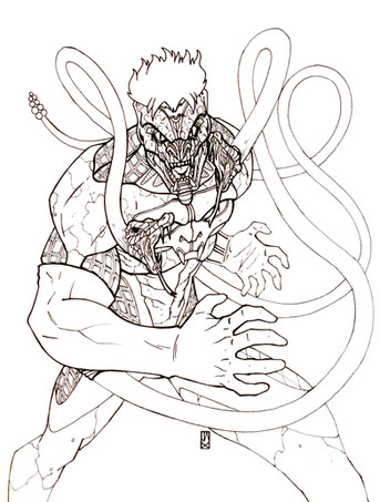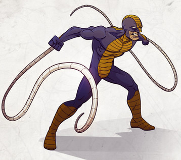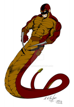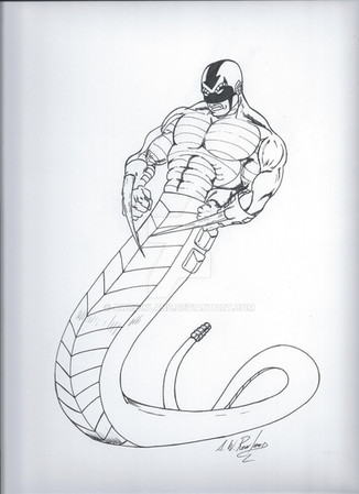 I recently bought a Constrictor action figure and decided to draw him. I've always liked this Marvel character. He's gone from being a bad guy to a good guy and back again. I'm aware that there are a few flaws in this drawing, namely his right leg, but in the original sketch it was even worse so its a huge improvement. I just needed to give drawing superheroes another shot. Its no masterpiece but at least I'm drawing again.If someone wants to color this they can.