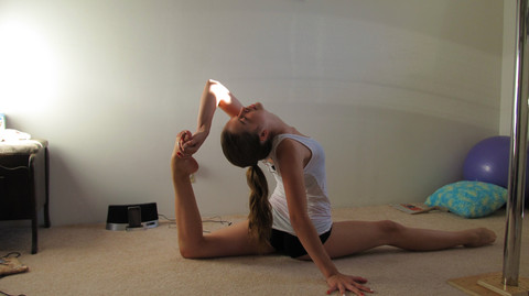 She also keeps saying that it comes in handy sometimes. I'm pretty flexible as well, but when it comes to that degree, my knees just say "nope"...