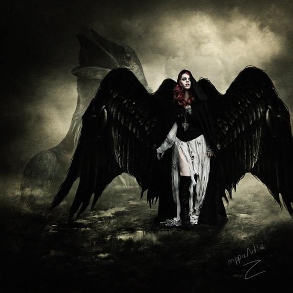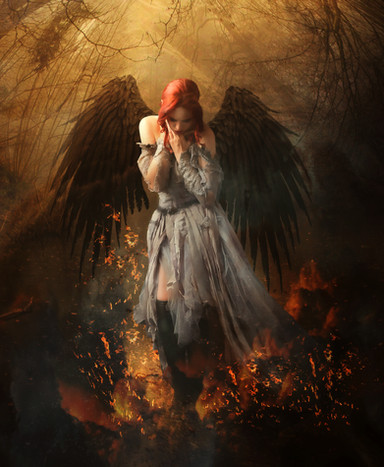 #angel #dark #darkart #demon #fantasy #girl #halo #wings #fire