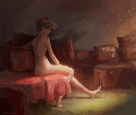 The use of light, the pose, the rough but precise forms ... everything about this painting is really tickling my brain in a pleasant way!