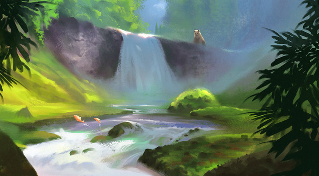 Lately,Β I'm really trying to focus on reducing the complexity of my composition down to the bear essentials. Β This image was giving me a ton of trouble, until I decided to take a big brush and paint over much of the unnecessary details. I'll try to push it further with the next one.