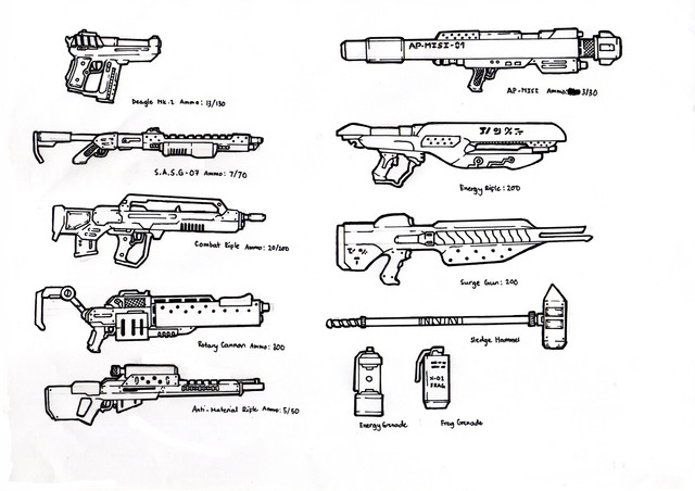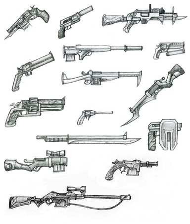 hi there. in what way do you want to reference it - do you want to simply redraw these, or do you want to do your own weapons based on my designs?