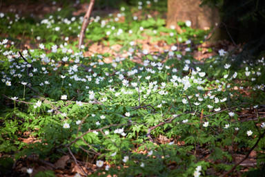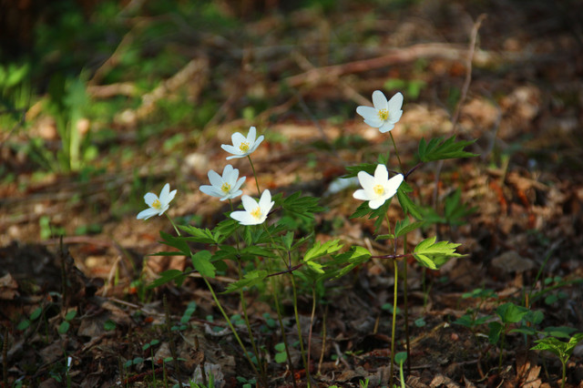 #anemone #brown #flower #forest #green #leaves #spring #sun #white