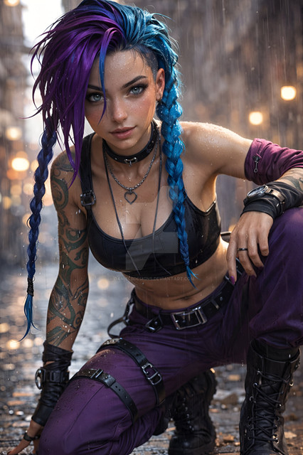 #portrait #beauty #tattoo #digitalart #body #cyberpunk #characterdesign #videogamefanart #photorealistic #beautiful #digitalartwork #jinx #uhd #jinxleagueoflegends