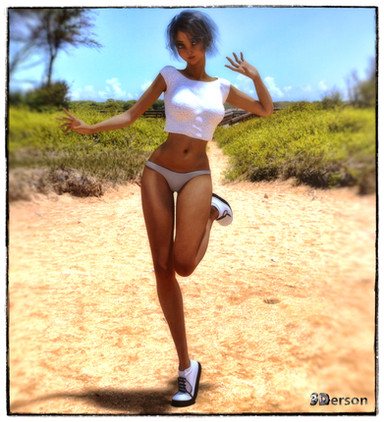 A nice little Pinup of Hitomi at the Beach. I was trying to work with different camera angles and this one just caught my eye.Daz Studio's Hitomi with custom skin and a few facial morphs to make her look a little different.