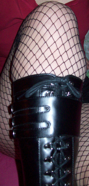 Just love leather, laces and fishnets, killer combination ... !! Delicious angle to boot ... hehehe