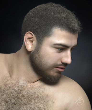 Laticis eyebrows, Real Short Hair, and Unshaven for Genesis. The hair, beard, eyebrows, and eyelashes all have Unshaven 2's Ginger shader applied.
